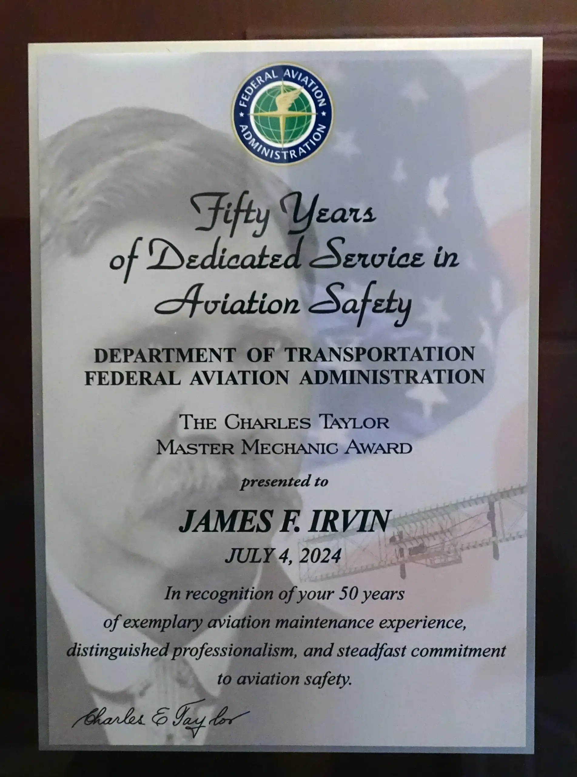 Charles Taylor Master MechanicAward